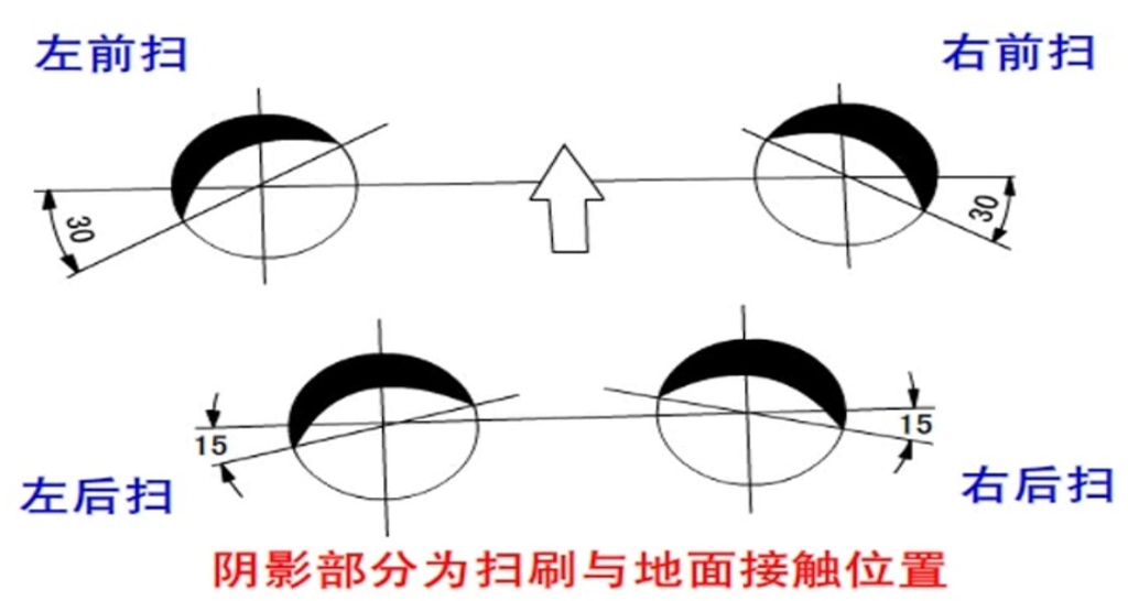 7、当清扫效果差时,应注意检查扫盘转速是否过低,扫刷磨损、触地情况,液压系统工作压力是否正常,车速是否过快等。
