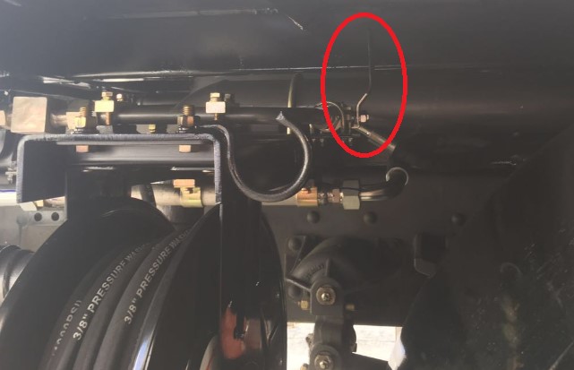 14、进行洗车枪作业时,需先打开后部的手动高压球阀开关,再开启洗车枪电控开关。此球阀在其他作业模式都应处于关闭状态,否则影响工作水压。