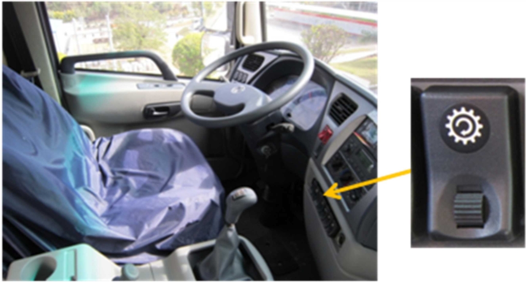 4)踩下主发离合器踏板,打开“取力器”电控开关;