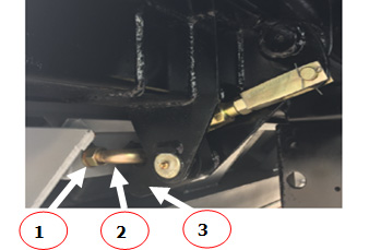 空车时,参见下图,在③处锁钩处于锁紧状态下,用扳手旋松①处靠近锁钩侧的调节螺母,同时调节另一侧螺母,使②处U型螺栓与锁钩处于合适松紧度,确保箱体与填料器结合面接触良好,不渗水,重新并紧调节螺母即可。