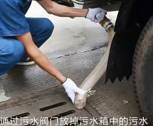 (4)将垃圾车内、外部以及污水箱口滤网冲洗干净。