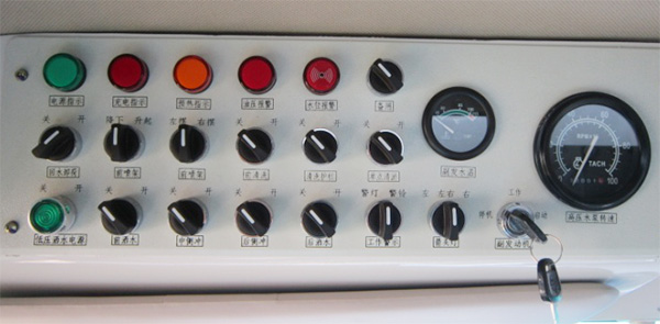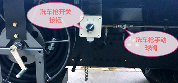 3)观察气压达到0.7Mpa以上时,选择所需的作业模式(前洒水、侧冲、后洒水、后高喷等)将作业开关打开;