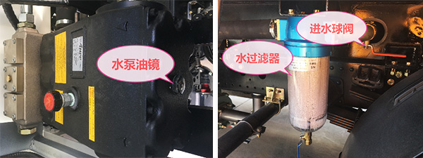 4)检查高压水泵润滑油油量是否处于油镜中心红点处;