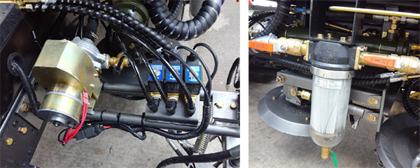 | 管路出现卸荷现象 | 检查水路阀门是否开关严实,在清洗、洗扫作业时,洗车枪、垃圾箱清淤出水球阀开关应处于关闭状态 |