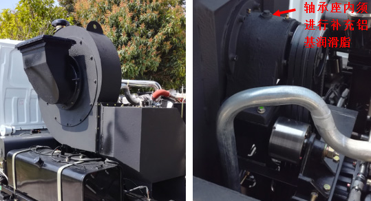 2)每工作50小时对风机轴承座补充铝基润滑脂,加油量为空腔的1/3;