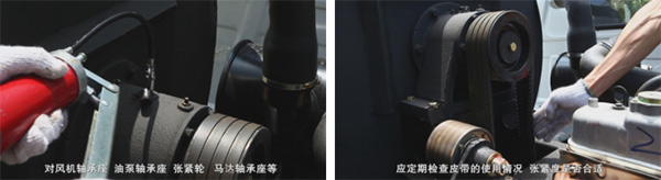 3)检查风机、齿轮油泵、发电机皮带的张紧情况,必要时进行调整;