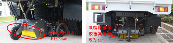 5)检查扫刷触地情况,吸嘴底部橡胶板磨损情况及离地间隙,必要时更换或调整离地间隙;