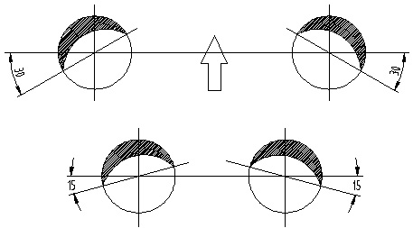 2)调整角度为:沿垂线前倾5°,外倾3°左右。