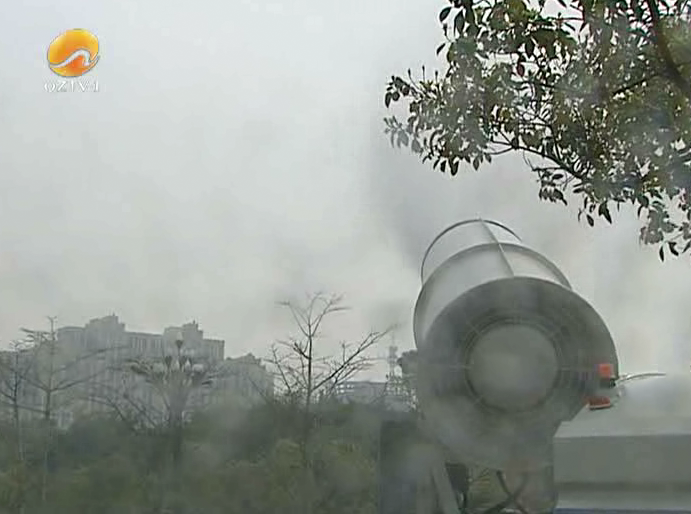 “这个高雾炮是可以把水打成非常细小的水分子颗粒 那它呈雾状,就是说我们雾霾主要是PM2.5 一些小颗粒 那它就是可以把那些小颗粒吸附包裹 然后让它降尘 起到一种除雾霾的作用”