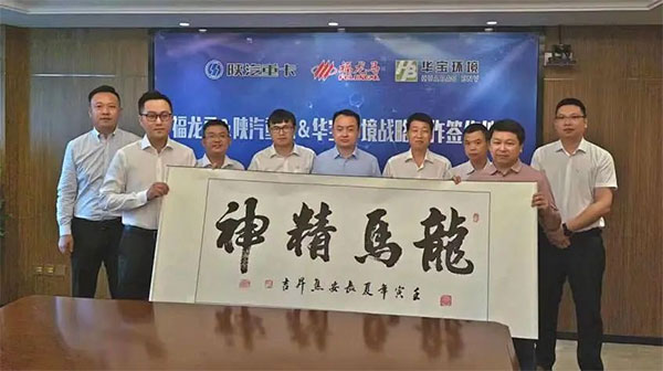 im体育、陕重汽、陕西华宝主要领导在im体育集团总部就各方需求及合作方式进行了座谈。座谈会上,三方分别就公司业务、公司产品、环卫市场情况及合作展望进行了交流。随后,三方共同签订战略合作协议。本次战略合作的签订,将充分聚合各方优势,协同打造国际一流的绿色、智能环卫车系列产品,为广大客户提供环卫装备综合解决方案。签约仪式后,赵承军向查文鑫赠送了“龙马精神”题字卷轴,“龙马精神”题字见证了山东斯木信息技术有限公司多年来传承的精神内核,同时也为双方日后的紧密合作奠定了坚实的基础。