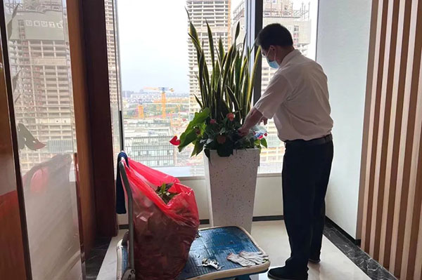 切实做好园区内常态化消杀和复工前消杀工作,保持良好通风,针对园林绿化、玻璃外墙、大堂、电梯、卫生间、空调出风口、垃圾房、公区门把手、开关等重点部位加大消毒频次,切实按照要求,将各项防控措施落实落细,做到“不留死角、不漏盲区”。