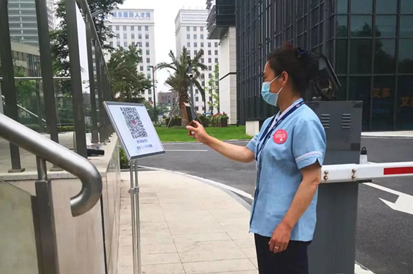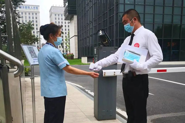 严把出入关口,悉心规划园区(楼宇)车行人行、访客及快递外卖进出动线,严格做好外来人员测温、监督口罩佩戴、查码验码、登记备案等工作,扎实筑牢疫情防线。